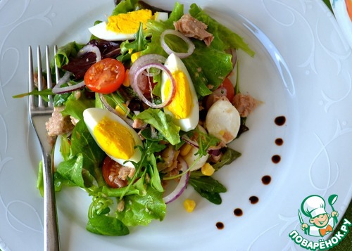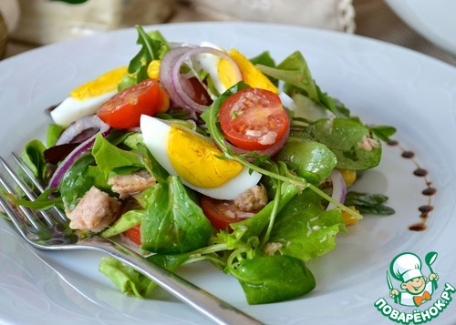 Посолить, поперчить, полить немного оливковым маслом и сбрызнуть бальзамическим уксусом. Аккуратно все перемешать. Яйца очистить и нарезать кубиками. Добавить в салат...