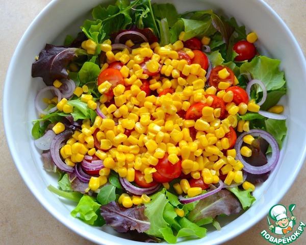 Добавить в миску консервированную кукурузу.