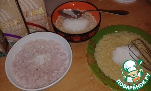 В набухшие хлопья добавить по ст. л. сахара. В рисовые положить растертые ягоды клубники