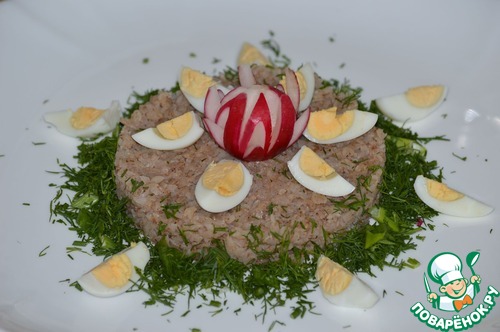 Яйца порезать на четвертинки. Яйца и зелень добавить к каше. Перемешать.