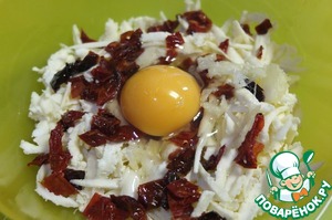 Для начинки, сыр адыгейский трем на крупной терке, томаты режем на небольшие кусочки, чеснок пропускаем через пресс. Добавляем яйцо, перемешиваем. В начинку можно добавить соль и специи.