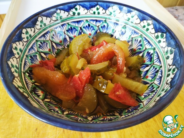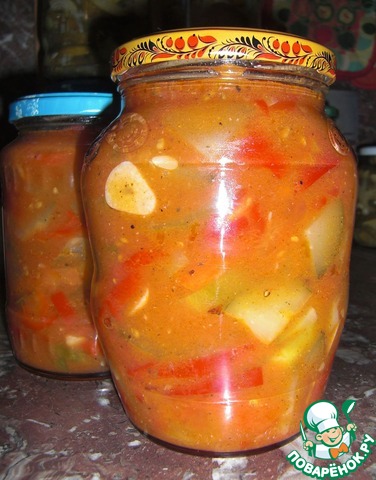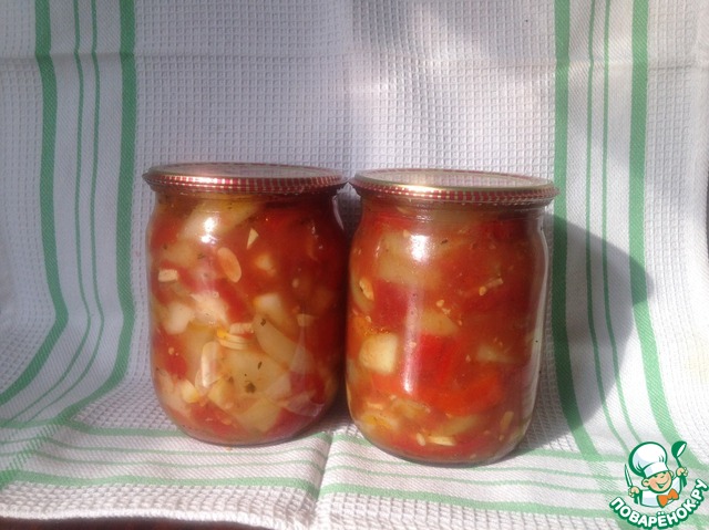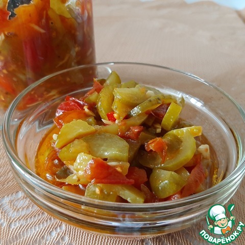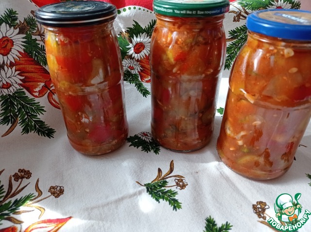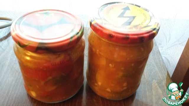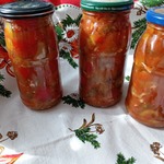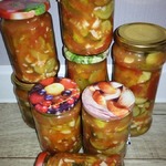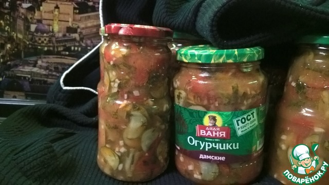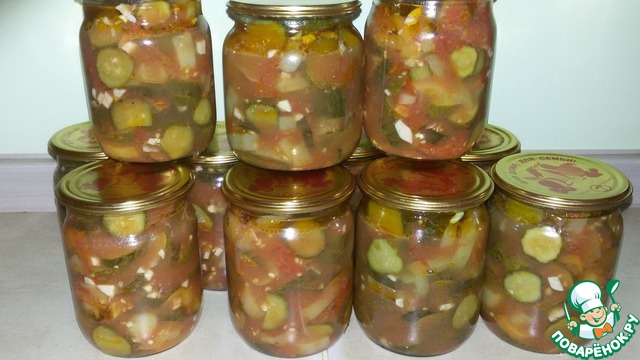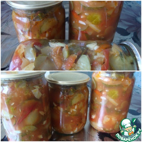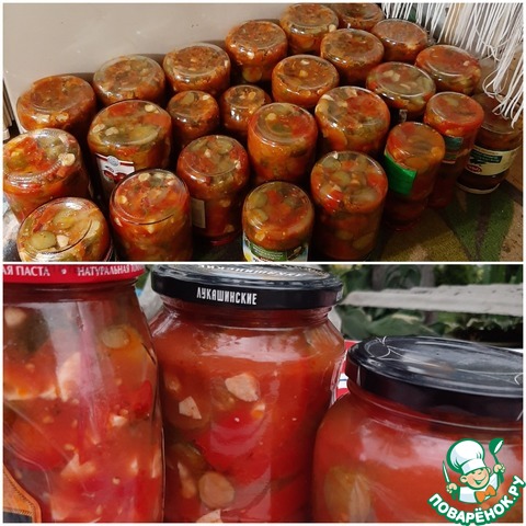 На сайте есть подобный рецепт, но написан так сумбурно, что ничего не понятно. Да и принцип приготовления немножко другой. А салат очень вкусный, интересный и пикантный. Долго думала, выставлять ли мне его? Но подумала, что жалко будет игнорировать такой потрясающий и не похожий на другие салат. Прекрасная закуска на зиму. Да и готовить легко и просто. Угощайтесь!!!