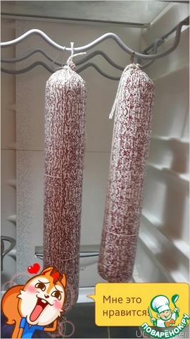 Прокрутить говядину и свинину по отдельности на решетке 5мм. Внести нитритную соль раздельно в количестве согласно рецепту. Перемешать и убрать в холодильник на 6 - 10 часов.