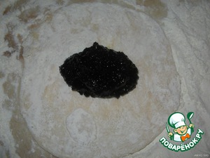Тесто раскатываем так же тонко, как и для пирожков с картошкой. Кладём начинку.