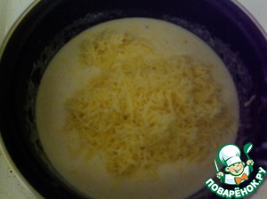 Добавляем 1,5 стакана молока комнатной температуры и хорошо размешиваем минуты 2-3. Добавляем мускатный орех и соль по вкусу (Но не забывайте, что сыр также соленый!). Как только соус начнет закипать, добавляем в него, предварительно натертый на мелкой терке сыр. Делать это лучше небольшими порциями, постоянно помешивая до полного растворения.