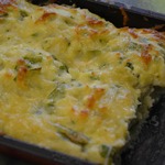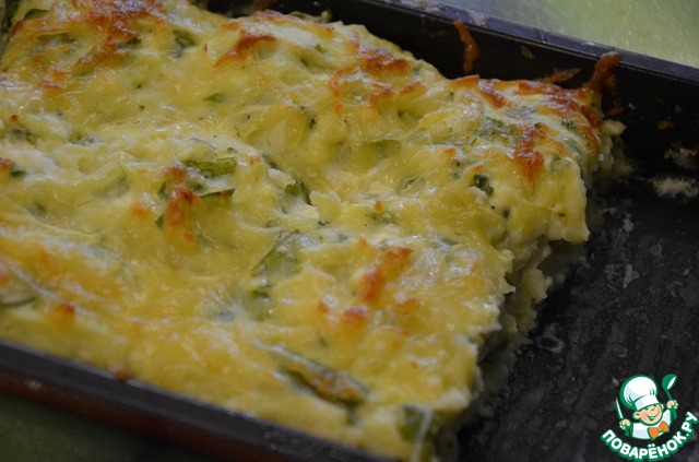 К натертым картофелю и кабачку, добавить измельченную зелень, приправы, творог, чеснок ( пропущенный через чесночницу), два яичных белка.