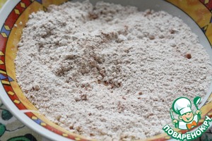 Смешать ржаную муку, сахар и разрыхлитель теста.