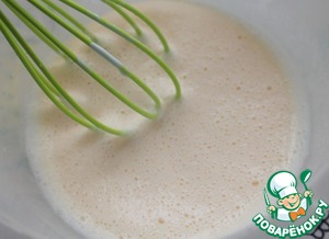 Яйца взбивать венчиком в течение 1-2 минут. Добавить сметану, перемешать.