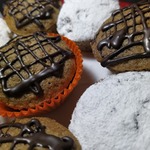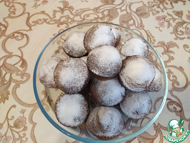 Готовить в микроволновке при 1000 Вт 2 минуты. По желанию можно выпекать в духовке 25 минут при 180 градусах. Готовность проверить лучиной. Дать кексам остыть, посыпать сахарной пудрой.