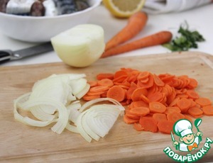 Рыбу вымыть, убрать внутренности, обсушить бумажным полотенцем, нарезать на кусочки толщиной 2 см. -