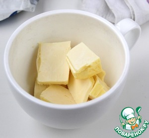 В чашку положить 100г сливочного масла и растопить в СВЧ