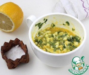 Посолить, поперчить, добавить 1/2 ч. л лимонного сока, хорошо перемешать.
