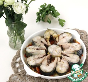 Вместо скумбрии (совсем не люблю ее) у меня филе трески. Рыбу готовила минут 12, перестраховалась.