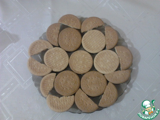 - Печенье (Можно использовать корж. Главное, чтобы было что-то, что впитает влагу, иначе получится квашня.) — 100 г