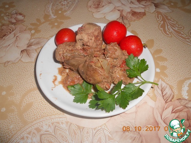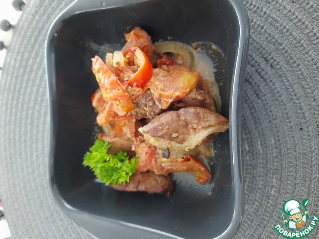 Рецепт «Куриная печень с томатами в СВЧ»: