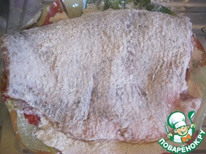 Смешать муку с солью и молотым черным перцем. Обвалять рыбку