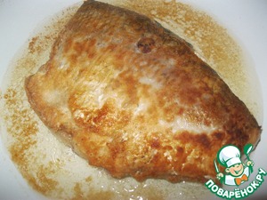 Обжарить на небольшом количестве масла на среднем огне. 5-7 минут с одной стороны без крышки и 5-7 мин с другой стороны, накрыв крышкой.