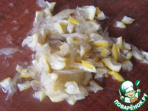 Лимон вместе с цедрой мелко порезать.