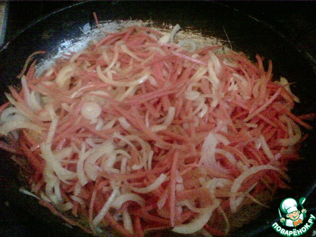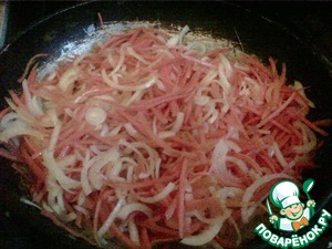 • Лук пережарить с морковью на растительном масле до полуготовности.