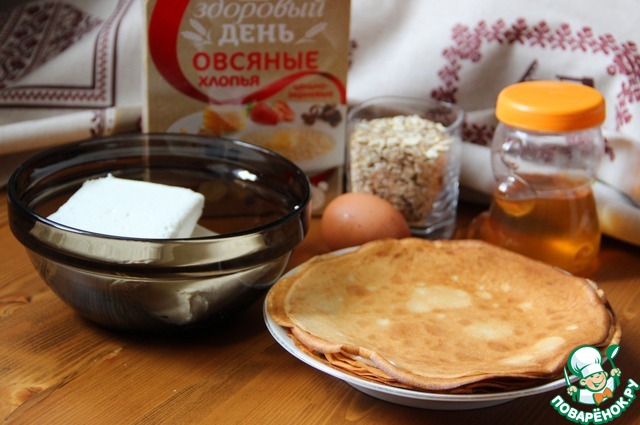 Ингредиенты для «Блинная запеканка с хлопьями и творогом»: