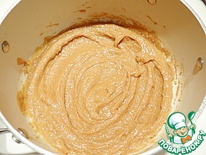 В кастрюле на медленном огне нагреваю мед, арахисовое масло, коричневый сахар.