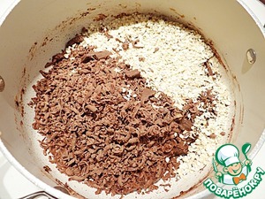 Затем добавляю овсяные хлопья и 1/2 часть тертого шоколада.