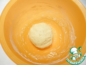 Форму для выпечки застилаю пергаментом (размер моей формы 22*30 см). Равномерно распределяю тесто по дну формы.