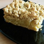 На остывшую основу выкладываю яблочную массу, выравниваю ее с помощью ложки, чуть прижимаю к основе.