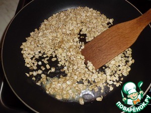 На сковороде, на среднем огне, с добавлением сливочного масла обжариваем хлопья от "Мистраль". Они должны получится сухими и хрустящими, не передержите.