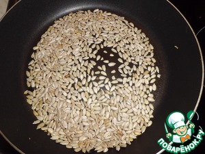 На этой же сковороде (можно параллельно) обжариваем семечки.