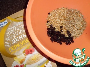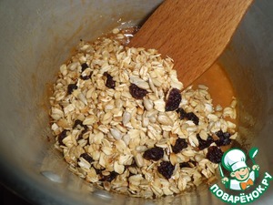 Выкладываем семечки, хлопья и нарезанный изюм (у меня был очень крупный) в отдельную посуду.