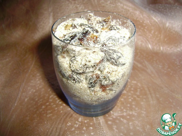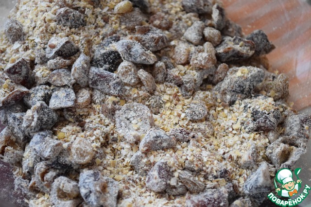 И хорошо перемешать нашу смесь (старайтесь чтобы каждый кусочек финика и изюма хорошо обвалялся в смеси!!!)