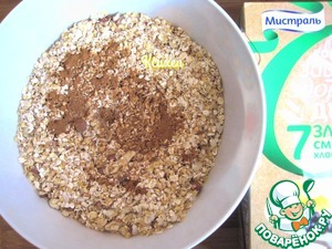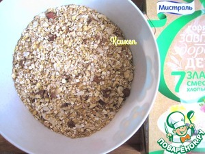 В большой посуде смешиваем мультизерновые хлопья 7 злаков и орехи.