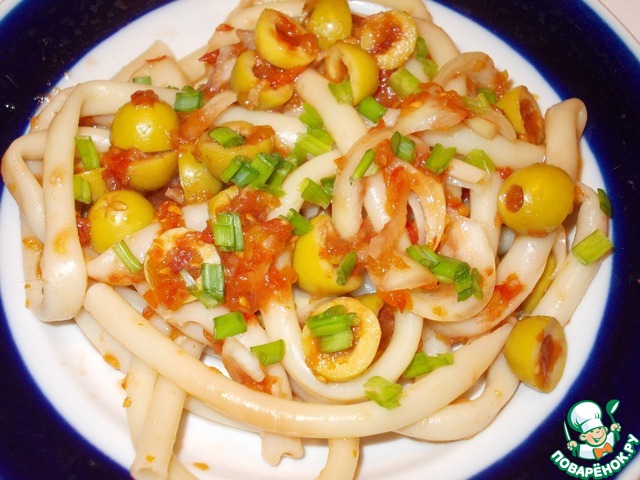 [+5]Делала с маслинами, тк люблю их больше оливок. Очень интересное сочетание вкусов - блюдо занесено в золотую коллекцию рецептов.