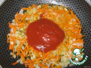• И томатную пасту. Хотя сейчас очень много свежих овощей и можно было бы добавить помидоры, но именно в этот борщ я всегда добавляю именно пасту.