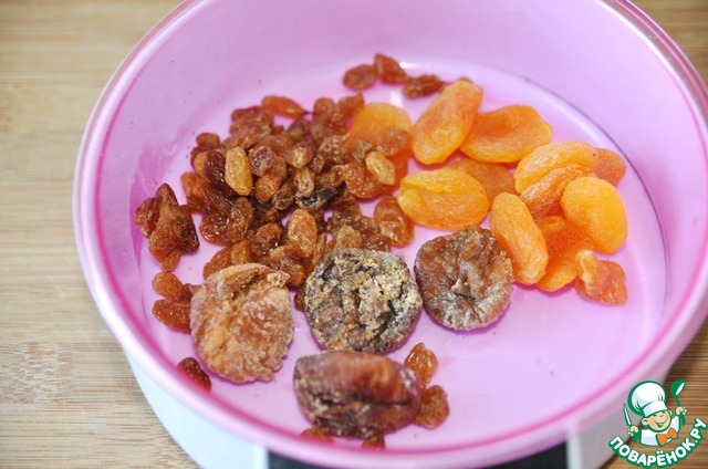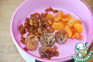 Берём курагу, вяленый инжир и изюм. Изюм предварительно запариваем.