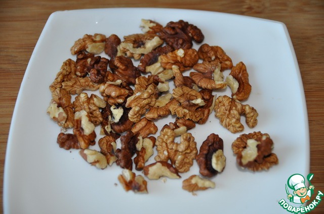 Курагу, инжир и орехи мелко режем. Можете по отдельности измельчить блендером.