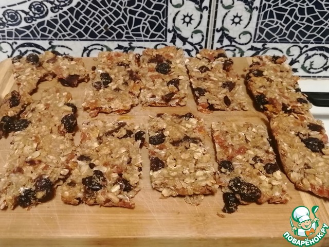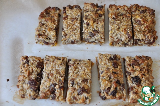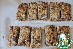 Достаём из духовки, даём немного остыть, нарезаем на батончики.