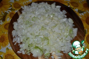 Лук репчатый тоже маленькими кубиками нарезаем.