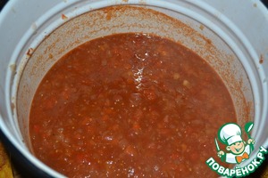 И ещё, количество зависит от исходного, я буквально вчера делала аджику по другому рецепту, 3 помидора весили 500 грамм, аджики получилось ~ 650 мл.