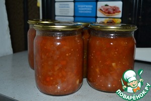 Горячим раскладываем по баночкам. Наша аджичка готова. Приятного аппетита!
