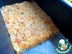 Положить в форму на пергамент и как следует утрамбовать и на 1 час убрать в холодильник. Нарезать брусочками и хранить до 1 месяца в холодильнике в воздухонепроницаемом контейнере.