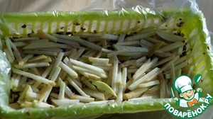 Одно небольшое яблоко нарезаем тонкой соломкой, сбрызгиваем его соком лимона - чтобы яблоко не потемнело. Лимон также оттенит сладкий вкус помадки. Выкладываем поверх массы.