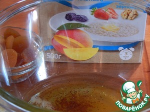 Духовку разогреваем до 180 градусов. Смешиваем в миске мед, масло, ванилин, корицу.