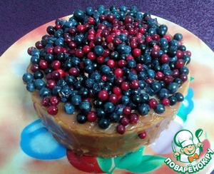 Прослоить торт вареной сгущенкой ( 1 банка), промазать верх и бока торта ( 0,5 банки). Ягоду промыть, перебрать и украсить ей торт.