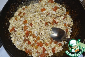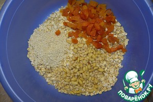 Добавить кунжут, кедровые орешки и нарезанную курагу.