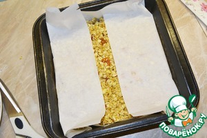 Выложить смесь в форму, застеленную пергаментной бумагой.