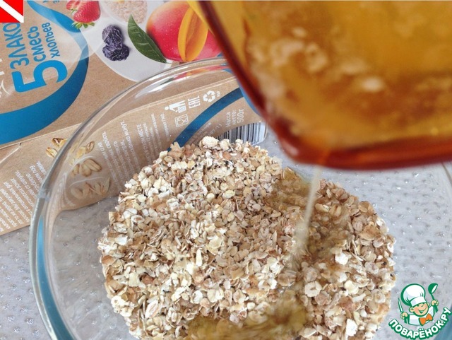 И выливаем на смесь из хлопьев. Хорошо перемешиваем.