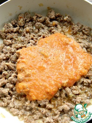 Выложить в перечно-мясной соус, перемешать.