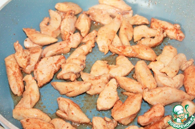 Грудку жарим на максимальном огне на сковороде до готовности.